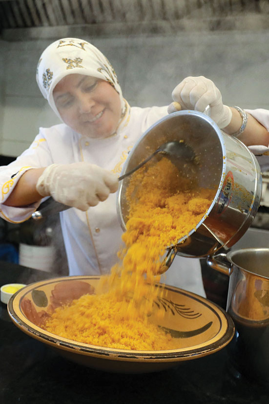 الشيف الليبي منيرة زويت، تحضر طبق الكسكس في مطبخ مطعمها في طرابلس .ا ف ب