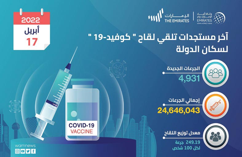 أعلنت وزارة الصحة ووقاية المجتمع عن تقديم 4,931 جرعة من لقاح “كوفيد-19” خلال الساعات الـ 24 الماضية وبذلك يبلغ مجموع عدد الجرعات التي تم تقديمها حتى امس 24,646,043 جرعة ومعدل توزيع اللقاح 249.19 جرعة لكل 100 شخص.