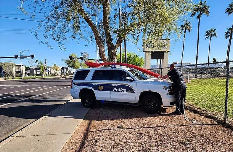 وجاء رجل صيانة المدرسة ودفع الملعقة عبر السياج إلى فوستر، الذي سلمها إلى شرطة فينيكس. وأصدرت شرطة فينيكس لقطات من كاميرا مراقبة تعود ليوم 25 مارس -آذار أظهرت رجلين وامرأة يخرجان الملعقة من قاعدتها ويضعانها على سطح مسطح كبير متصل بشاحنة صغيرة.