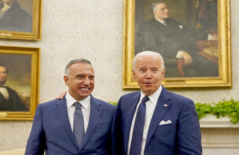 حين استقبل بايدن الكاظمي في 26 يوليو، تحدث الرئيس الحالي عن إنهاء المهمة القتالية لقواته وعن قضايا أخرى مثل التغير المناخي والرعاية الصحية والطاقة.