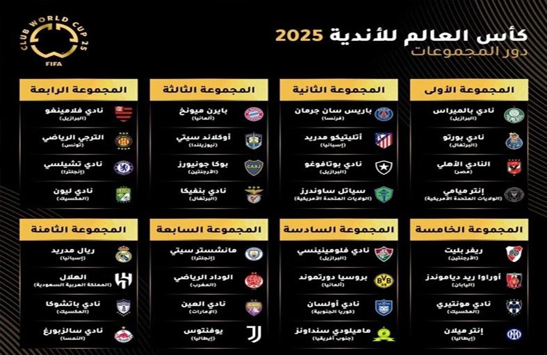 أسفرت قرعة بطولة كأس العالم للأندية لكرة القدم، المقرر إقامتها بالولايات المتحدة صيف العام المقبل، عن مجموعات متفاوتة القوة للأندية العربية المشاركة في المسابقة العالمية.