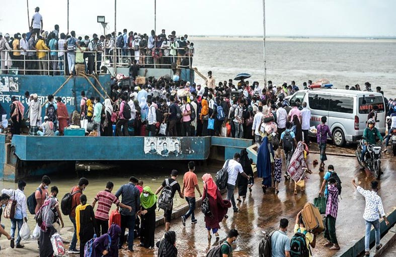 وفي محطة نهرية في بلدة سرينغار على بعد نحو 70 كلم جنوب دكا، اصطف الالاف في طوابير في ساعة مبكرة الأحد لعبور بادما، أحد روافد نهر الغانج بالهيملايا.