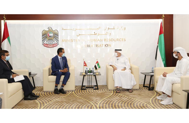 بحث معالي الدكتور عبدالرحمن بن عبدالمنان العور وزير الموارد البشرية والتوطين - خلال لقائه في ديوان الوزارة بأبوظبي - سعادة كريشنا براساد سفير جمهورية نيبال الديمقراطية الفيدرالية لدى الدولة تعزيز التعاون في مجال القوى العاملة.