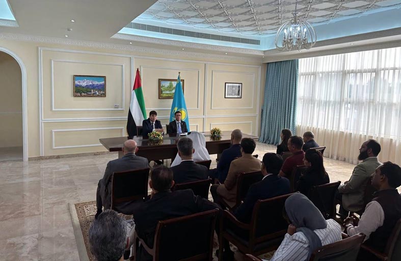 التقى سعادة روان جومابيك القنصل العام الكازاخستاني في دبي والإمارات الشمالية، عدداً من ممثلي الشركات العالمية العاملة في دبي ورواد الأعمال المحليين، بتنسيق من غرفة تجارة وصناعة دبي؛ وذلك بمقر القنصلية العامة في دبي.