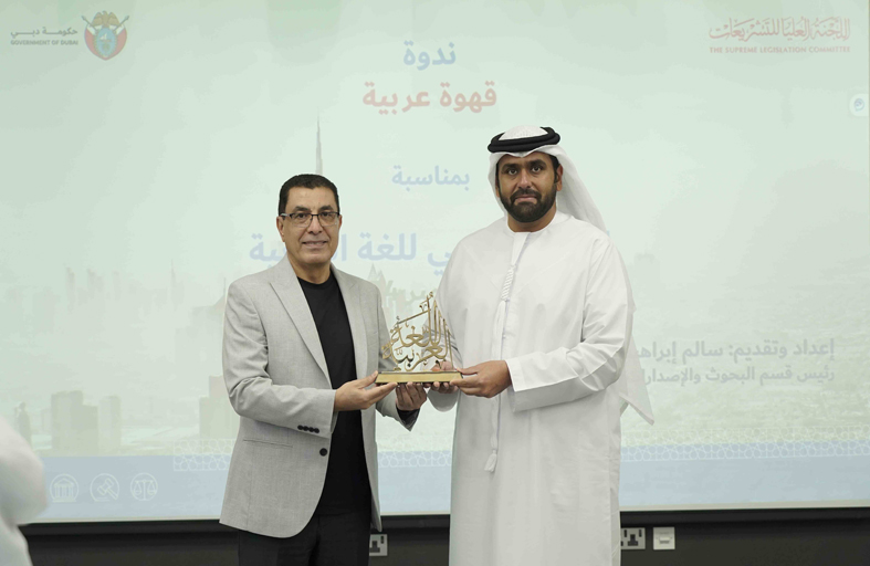 نظمت الأمانة العامة للجنة العليا للتشريعات في إمارة دبي ندوة “قهوة عربية” تزامناً مع الاحتفال باليوم العالمي للغة العربية، وقدم هذه الندوة الأستاذ سالم الأحمد، رئيس قسم البحوث والإصدارات بإدارة التثقيف التشريعي في اللجنة العليا للتشريعات، بحضور محمد جمعة السويدي مساعد الأمين العام، وموظفي الأمانة العامة للجنة.
