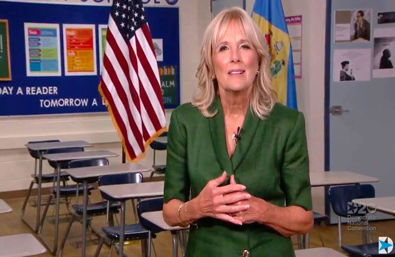 شبه غائبة خلال حملات 2008 و2012، قامت جيل بايدن بعملها بشكل متميّز وفي سياق مختلف تمامًا عن عمل السيدة أوباما، حيث هاجمت السيدة الأولى السابقة دونالد ترامب واستفزته، وعملت على تدمير سجل ثلاث سنوات مع إثارة شبح إعادة انتخابه، في حين اختارت السيدة بايدن نغمة أكثر هدوءً واتزانًا. لقد لعبت بمهارة على المخاوف المشروعة للأسر التي تخشى عودة أطفالها إلى الفصول الدراسية، بينما لم تنته الموجة الأولى من كوفيد-19.