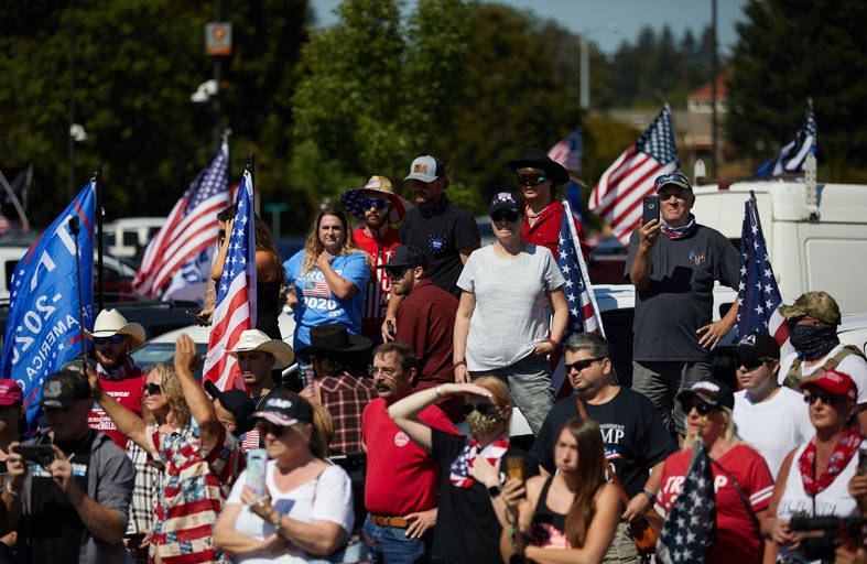 تجمع المئات من أنصار الرئيس دونالد ترامب في استعراض كبير ضم مواكب سيارات لدعم مرشحهم والشرطة قرب بورتلاند، حيث تقع صدامات بانتظام بين الناشطين المناهضين للعنصرية وقوات الأمن منذ أكثر من مئة يوم.