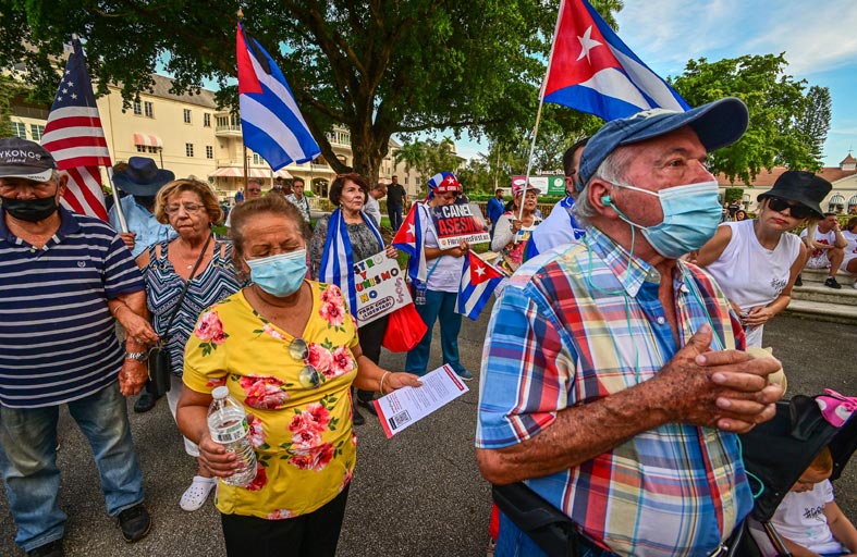 تجمّع مئات المتظاهرين في واشنطن للمطالبة “بالحرّية” لكوبا وبتدخّل الولايات المتحدة، بعد قمع الاحتجاجات التاريخيّة التي شهدتها الجزيرة.