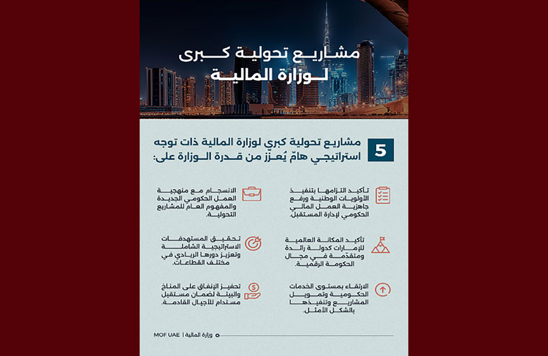 أعلنت وزارة المالية عن 5 مشاريع تحولية كبرى ذات توجه استراتيجي هام من شأنها تعزيز قدرتها على الالتزام بتنفيذ الأولويات الوطنية ورفع جاهزية العمل المالي الحكومي لإدارة المستقبل.