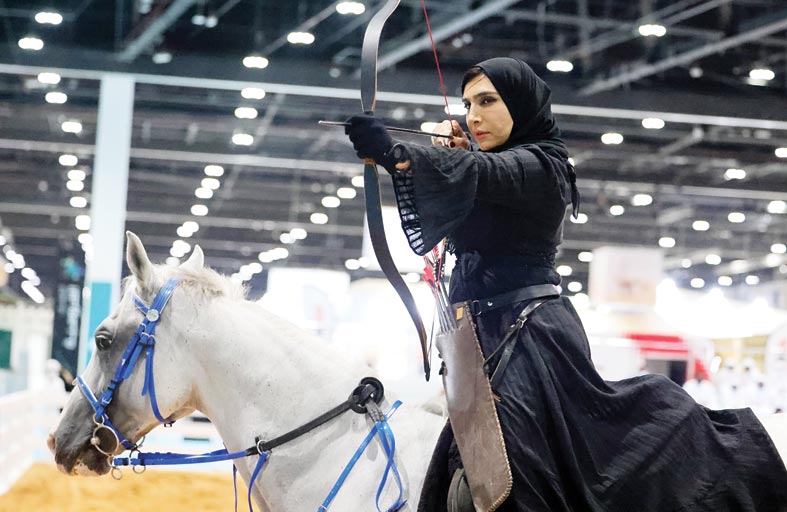 وكذلك تبرز في ساحة العروض مُشاركة الفارسة الإماراتية آمنة الجسمي، التي استطاعت أن تقدم نموذجاً مشرفاً لبنت الإمارات، خاصة مع دورها الريادي في نشر هذه الرياضة المتوارثة من الأجداد بين الأجيال الجديدة، وتقوم بتقديم عروض للرماية بالقوس والسهم على ظهر الخيل، وكذلك فن المبارزة بالسيف من على ظهر الخيل ضمن المعرض هذا العام.