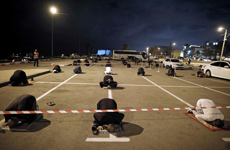 في مسجد الاستقلال بإندونيسيا، وهو أكبر مسجد في جنوب شرق آسيا، يتردد صدى أذان المغرب في أرجاء المسجد الخالي مع رسالة تطلب من الناس الصلاة في منازلهم، في تناقض صارخ مع احتشاد الآلاف فيه العام الماضي للصلاة.