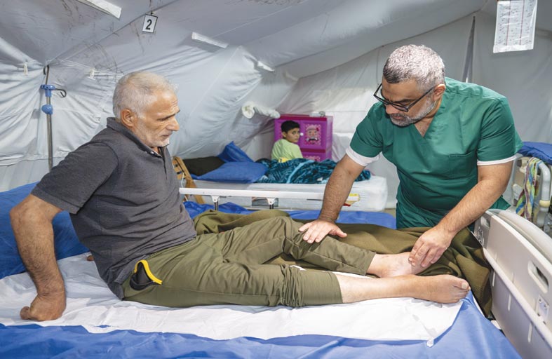 وأشار إلى أن المستشفى أجرى عملية جراحية نوعية ودقيقة لجريحة فلسطينية أصيبت بشظية جراء القصف الجوي، أدت إلى كسر وقطع في عصب الساق وسببت عجزاً في حركة القدم، موضحاً أن الفريق الطبي المعالج قام بعمل تحويل لمسار الأوتار من خلف الكاحل إلى الأمام لإعادة الحركة إلى القدم. ويواصل المستشفى تركيب الأطراف الاصطناعية للجرحى والمصابين الذين فقدوا أطرافهم خلال الحرب في قطاع غزة؛ إذ يقوم فريق طبي متخصص بأخذ قياسات المصابين بدقة متناهية ثم تصنيع الأطراف التي يحتاجون إليها، في الوقت الذي يتلقى فيه المريض العلاج الطبيعي بالتزامن مع التأهيل الحركي والنفسي.