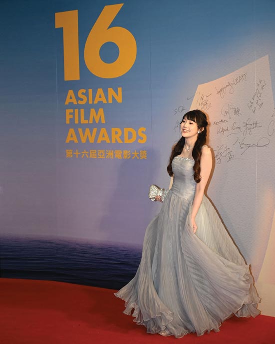 المغنية وكاتبة الأغاني والممثلة الماليزية جويس تشو لدى وصولها إلى حفل توزيع جوائز الأفلام الآسيوية السادس عشر في هونغ كونغ. ا ف ب