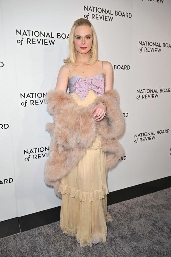 الممثلة الأمريكية إيل فانينج لدى حضورها حفل توزيع جوائز المجلس الوطني للمراجعة في نيويورك. (ا ف ب)