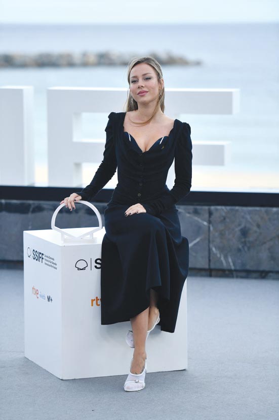 الممثلة الإسبانية إستر إكسبوزيتو تروج لفيلم «إل لانتو» خلال مهرجان سان سيباستيان السينمائي الدولي شمال إسبانيا. (ا ف ب)