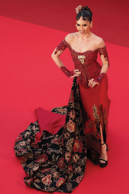 الممثلة الإندونيسية سينتا لورا كيهل لدى حضورها عرض فيلم «إدينجتون» في الدورة 78 من مهرجان كان السينمائي. ا ف ب