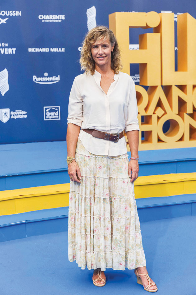الممثلة البلجيكية سيسيل دو فرانس خلال جلسة تصوير لفيلم «بونارد بيير» خلال مهرجان أنجوليم السينمائي غرب فرنسا. (ا ف ب)