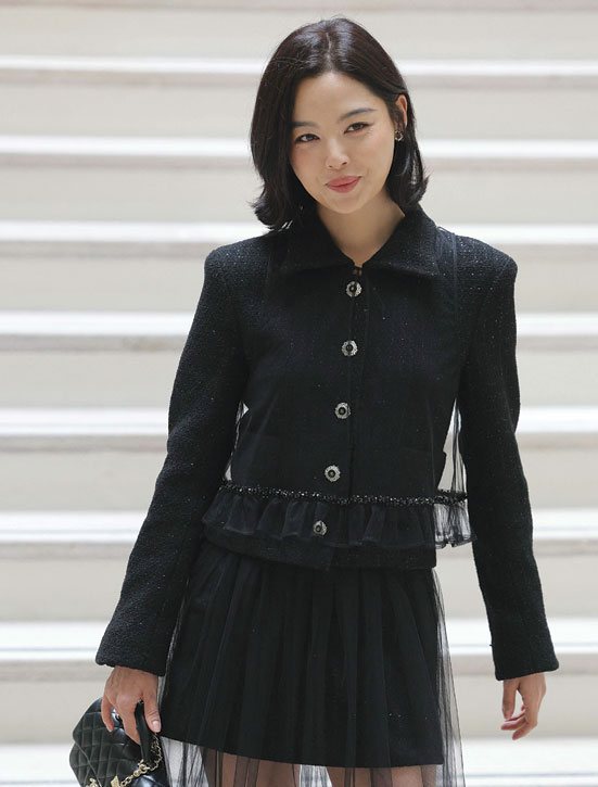 الممثلة الصينية شين تشيلي لدى وصولها إلى عرض أزياء شانيل لخريف وشتاء 2025-2026 في باريس. ا ف ب