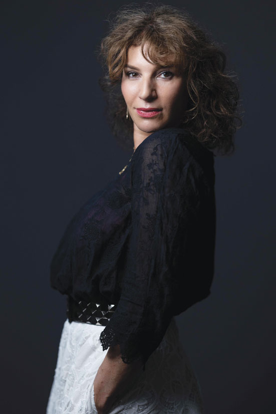 الممثلة الفرنسية آن ديبيتريني خلال جلسة تصوير في معرض سان جيرمان دي بري للكتاب في باريس. ا ف ب