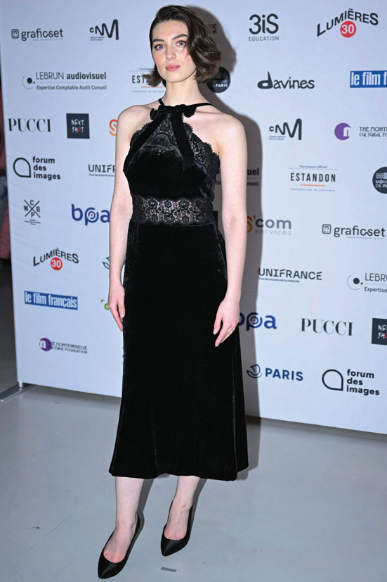 الممثلة الفرنسية الرومانية أناماريا فارتولومي خلال جلسة التصوير الخاصة بحفل توزيع جوائز السينما الـ 28  Ceremonie des lumieres  في باريس. (ا ف ب)