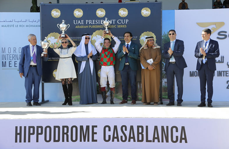 حضر السباق وتوج الأبطال سعادة العصري سعيد أحمد الظاهري سفير الدولة لدى المملكة المغربية، وسعادة فيصل الرحماني مشرف عام سلسلة سباقات كأس رئيس الدولة للخيول العربية.