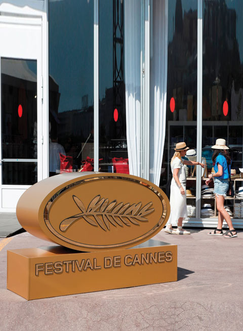 الناس يمشون بجوار رمز السعفة الذهبية في أحد الشوارع مع بدء مهرجان كان السينمائي 74. (رويترز)