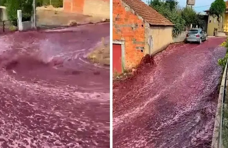 غمر النبيذ الأحمر شوارع إحدى المدن في البرتغال، وتحولت الشوارع إلى أنهار مع تدفق قرابة 2.2 مليون ليتر، أي ما يعادل كمية الماء الموجودة في حوض سباحة أولمبي. وذكرت وسائل الإعلام إلى أن الحادثة وقعت ظهر يوم  أول أول أمس الأحد في مدينة أناديا البرتغالية بعد انفجار خزانين في مصنع محلي للنبيذ.