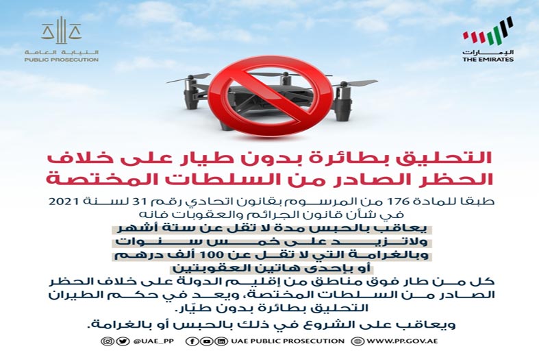 النيابة العامة للدولة توضح عقوبة التحليق بطائرة بدون طيار على خلاف الحظر الصادر من السلطات المختصة