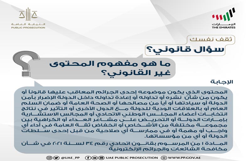 النيابة العامة للدولة توضح مفهوم المحتوى غير القانوني