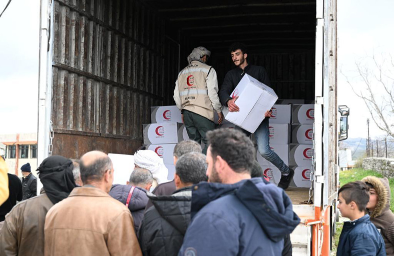 الهلال الأحمر الإماراتي يوزع المير الرمضاني على متضرري زلزال سوريا