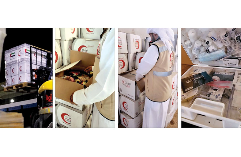 وواصلت الهيئة تقديم الاحتياجات الإنسانية للمتضررين في المناطق الأكثر تأثرا بتداعيات الكارثة خاصة في الشرق الليبي عبر توفيرمئات الأطنان من المواد الغذئية ومواد الإيواء والطرود الصحية إلى جانب مستزمات الإسعافات الأولية. إلى ذلك يواصل وفد الهلال الأحمر الإماراتي وفريقه الإغاثي الموجود حاليا على الساحة الليبية تقييم الأوضاع الميدانية ودراسة الاحتياجات الفعلية الراهنة لتوفير المزيد منها عبر رحلات الجسر الجوي الإماراتي المتواصلة لمساندة الأشقاء في ليبيا والوقوف إلى جانبهم، وتخفيف وطأة المعاناة عن كاهلهم في ظروفهم الراهنة. وأكد سعادة حمود عبد الله الجنيبي الأمين العام المكلف لهيئة الهلال الأحمر الإماراتي: " تنفيذاً لتوجيهات القيادة الرشيدة آلت الهيئة على نفسها تقديم أشكال الدعم والمساندة كافة للأشقاء في ليبيا، والوقوف إلى جانبهم حتى تنجلي هذه المحنة التي خلفت أوضاعا إنسانية مأساوية، وأودت بحياة الآلاف وأحدثت دمارا كبيرا في البنية التحتية والممتلكات".