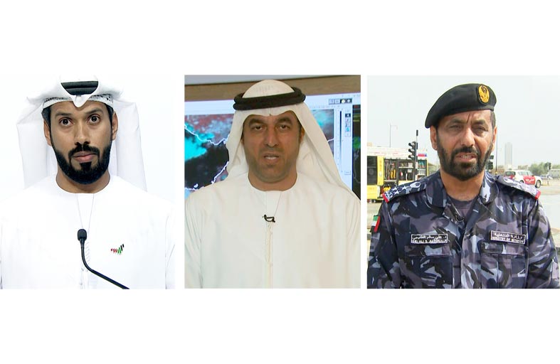 وقالوا إنه في ظل رؤية القيادة الرشيدة وتوجيهات حكومة الإمارات فإن سلامة الأشخاص والممتلكات "على رأس الأولويات" حيث تعمل الفرق المختصة ليل نهار وفق خطط علمية وعملية في الاستعداد والجاهزية للتعامل مع كافة الحالات الطارئة، وفق منظومة عملٍ تكاملية لتعزيز حماية المجتمع والممتلكات بتعاون وهمة الجميع. ودعوا الجمهور.. حفاظاً على سلامتهم.. إلى ضرورة التزام تعليمات وإرشادات الجهات المعنية، وتوخي الحيطة والحذر، والتزام اشتراطات السلامة وعدم مغادرة المنازل غير المتضررة، خاصة في المناطق التي تشهد أمطاراً غزيرة إلا للضرورة وأكدوا أهمية القيادة بحذر شديد، والابتعاد عن مجاري المياه والسيول والمناطق الوعرة مثل الجبال.