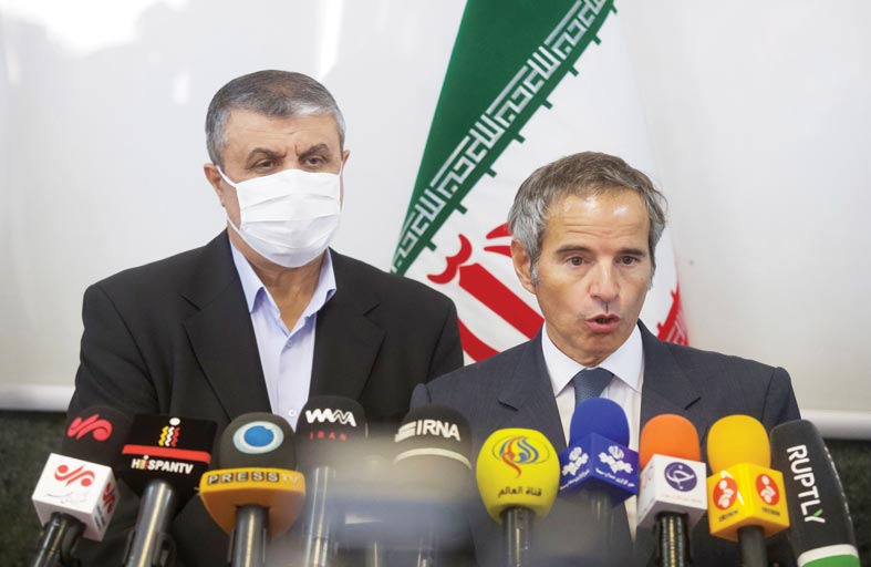 هذا ومع انتهاء الاجتماع بين مدير الوكالة الدولية للطاقة الذرية، رافاييل غروسي الذي حط أمس في العاصمة طهران، ورئيس المنظمة الإيرانية للطاقة الذرية، محمد إسلامي، أعلنت الوكالة في بيان مشترك أن السلطات الإيرانية وافقت على السماح للمفتشين الدوليين بصيانة معدات مراقبة محددة واستبدال بطاقات الذاكرة الخاصة في عدد من المواقع النووية. إلا أنها أوضحت أنها لم تحصل حتى الآن على إمكانية الاطلاع على تسجيلات الكاميرات. لكن غروسي بزيارته الثانية إلى إيران هذه السنة، نجح في ضمان الاستمرار بمراقبة البرنامج النووي الإيراني وفق الترتيبات السارية، إذ كانت الوكالة تخشى فقدان البيانات في حال استنفاد سعة التسجيل في الكاميرات. بدوره، وصف إسلامي محادثاته مع الضيف الغربي، بالبناءة، قائلا بحسب ما نقلت وكالة رويترز، إن غروسي سيزور إيران قريبا لمواصلة المحادثات.