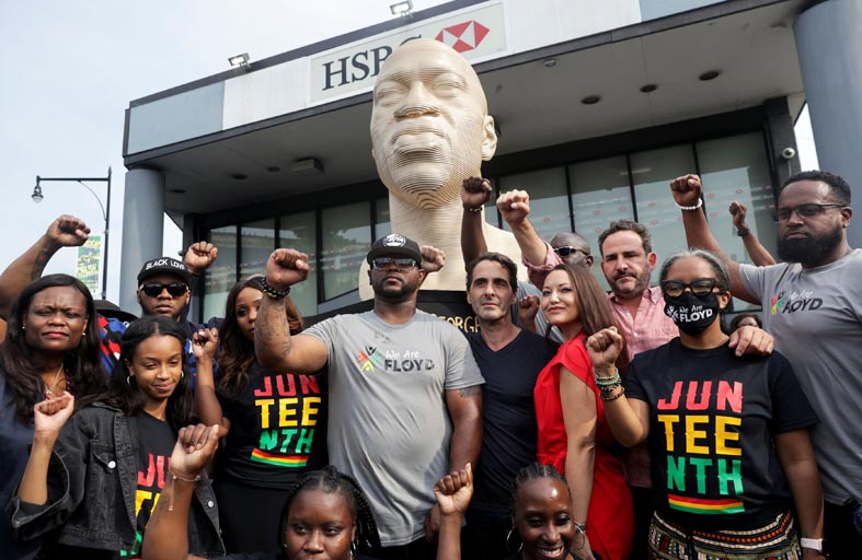 وقالت فرح لويس المسؤولة في إدارة بروكلين في نيويورك خلال حضورها إزاحة الستار عن تمثال نصفي لفلويد في حي السود “لم أكن أعرف شيئا عن +جونتينث+ إلى أن وصلت المرحلة الثانوية في الدراسة».