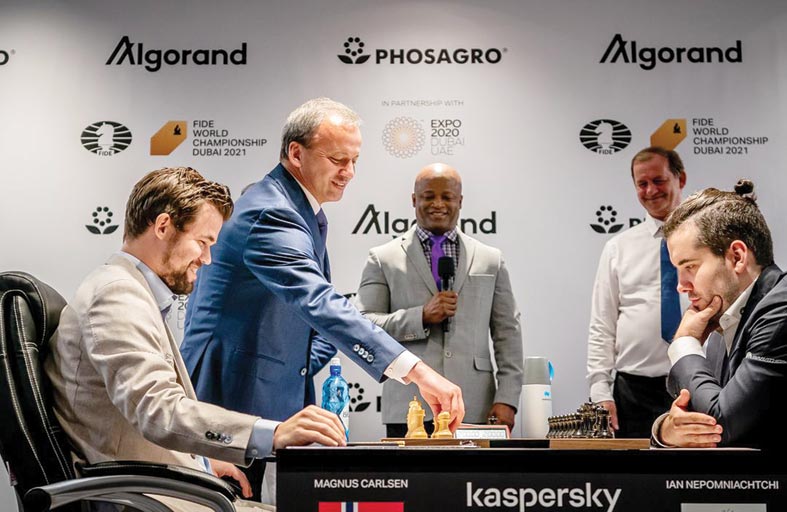 منحت المباراة الثانية من بطولة العالم للشطرنج التابعة للاتحاد الدولي للشطرنج، بين بطل العالم النرويجي ماغنوس كارلسن، ومنافسه الروسي يان نيبومنياتشي، للمشاهدين لمحة عما يمكن أن تكون عليه معركة محورية على لوحة اللعب، حيث حدد حامل اللقب كارلسن المسار بحصوله على ميزة الحركة الأولى يوم أمس الأول السبت. وتقام بطولة العالم في مركز دبي للمعارض في إكسبو 2020 دبي، حيث تعقد 14 مباراة بنظام الشطرنج التقليدي الكلاسيكي مقابل جائزة بقيمة مليوني يورو (2.25 مليون دولار أمريكي)، مع 60 في المئة للفائز و40 في المئة للوصيف. وكان من المقرر أصلا أن تبدأ هذه البطولة في 20 ديسمبر من العام الماضي، ولكنها تأجلت بسبب جائحة كوفيد-19.