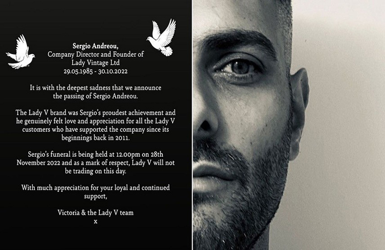 وبعد أن أخبر زوجته -التي انفصل عنها- في رسالة نصية أنه يشعر وكأنه محاصر ولا يعرف ماذا يفعل، تم العثور على السيد أندريو مشنوقاً في منزله الذي تبلغ قيمته مليون جنيه إسترليني (1.25 مليون دولار) في هامبشاير. بيت. وأنشأ الزوجان خط ملابس Lady Vintage في عام 2011 ونتيجة لنجاحه قاما بشراء 13 عقار، وقالت السيدة أندريو أمام المحكمة: “كان لدى سيرجيو القدرة على الدخول إلى أي مكان والتحدث إلى أي شخص. لقد كان مبدعاً وذو شخصية جذابة للغاية. وكان محبوباً من قبل الكثير من الناس. لقد كان رجل الأفكار والشخصية».