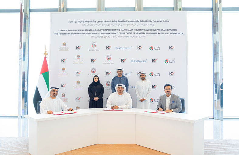 بحضور معالي الدكتور سلطان بن أحمد الجابر وزير الصناعة والتكنولوجيا المتقدمة، ومعالي سارة بنت يوسف الأميري وزيرة دولة للتعليم العام والتكنولوجيا المتقدمة، ومعالي منصور إبراهيم المنصوري رئيس دائرة الصحة –أبوظبي وقعّت وزارة الصناعة والتكنولوجيا المتقدمة مذكرة تفاهم مع دائرة الصحة -أبوظبي، الجهة التنظيمية لقطاع الرعاية الصحية في الإمارة، و “مجموعة بيور هيلث” أكبر منصة رعاية صحية متكاملة في دولة الإمارات، وشركة رافد للمستلزمات الطبية للانضمام إلى برنامج “القيمة الوطنية المضافة” الذي تشرف على تنفيذه وزارة الصناعة والتكنولوجيا المتقدمة كأحد “مشاريع الخمسين»،