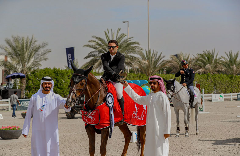 وبرعاية هيئة الإنماء التجاري والسياحي بالشارقة أقيمت المنافسة التأهيلية الثانية لمنافسة الجائزة الكبرى للبطولة الدولية من فئة النجمتين بمواصفات الجولة الواحدة صمم مسارها بحواجز بلغ ارتفاعها 140 سم بمشاركة 75 فارساً وفارسة ونجح 24 فارساً في عبور الجولة دون خطأ وأفضلهم زمنا الفارس البلجيكي عبد القادر سعيد وحققه مع الفرس “اتنسلي” وبلغ 61.22 ثانية وتوّج بجائزة المركز الأول وحاز جائزة المركز الثاني الفارس الإيطالي لوكا كواتان وأكمل الجولة مع الفرس “كاسيرانا” في زمن بلغ 62.07 ثانية وحازت جائزة المركز الثالث الفارسة السورية آية حمشو والجواد “دي اكس بي ليجند” والزمن 63.03 ثانية.