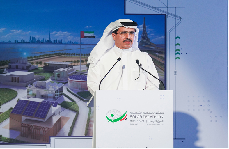 وقال معالي الطاير - في كلمته الافتتاحية - : " يسعدني أن أرحب بكم في دولة الإمارات العربية المتحدة حاضنة المبدعين ووجهة رواد الأعمال والمبتكرين والشركات الناشئة من مختلف أنحاء العالم بما توفره من بيئة محفزة لصناعة المستقبل في ظل القيادة الرشيدة لسيدي صاحب السمو الشيخ خليفة بن زايد آل نهيان رئيس الدولة "حفظه الله" وصاحب السمو الشيخ محمد بن راشد آل مكتوم نائب رئيس الدولة رئيس مجلس الوزراء حاكم دبي "رعاه الله" وصاحب السمو الشيخ محمد بن زايد آل نهيان ولي عهد أبوظبي نائب القائد الأعلى للقوات المسلحة . كما يسرني أن أرحب بكم في مجمع محمد بن راشد آل مكتوم للطاقة الشمسية أكبر مجمع للطاقة الشمسية في موقع واحد على مستوى العالم وستبلغ قدرته الإنتاجية نحو 5000 ميجاوات بحلول عام 2030 ويوفر حالياً نحو 10% من القدرة الإنتاجية للطاقة في دبي. وستصل نسبة القدرة النظيفة إلى 75% من مزيج الطاقة بحلول عام 2050 وفق استراتيجية دبي للطاقة النظيفة 2050." وأضاف أن استضافة دبي للدورتين الأولى والثانية من مسابقة ديكاثلون الطاقة الشمسية – الشرق الأوسط تدعم رؤية قيادتنا الرشيدة بضرورة تمكين المبتكرين من الشباب وضمن جهودنا لتشجيع الشباب من مختلف أنحاء العالم على إطلاق طاقاتهم وتحفيزهم على الإبداع والابتكار لا سيما في مجال الاستدامة لتطوير حلول مبتكرة تدعم الجهود العالمية لمواجهة التغير المناخي وتعزيز التحول نحو نمط حياة أكثر استدامة إدراكاً منا بأن الشباب هم القوة الدافعة لبناء مستقبل أكثر إشراقاً واستدامة.