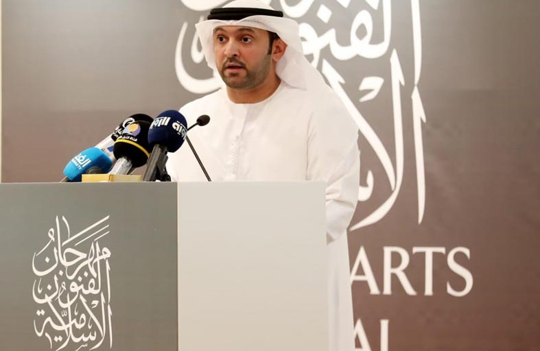 وأضاف" منذُ أربعةٍ وعشرينَ عاماً، وضعَ صاحب السمو الشيخ الدكتور سلطان بن محمد القاسمي، عضو المجلس الأعلى للاتحاد، حاكم الشارقة، حفظه الله، حجرَ الأساس لمشروعٍ فنيٍ عالميٍ، تمثّل في مهرجان الفنون الإسلامية، لكي يستعيدَ إرثاً فنياً له جمالياته الخاصة ودلالاته التاريخية، فهو الفن الذي تركَ أثرهُ منذُ مئات السنين حتى يَومِنا هذا، وهو إذ يحقّق مصداقيته، فذلك بفضلِ رؤية سموّه الحكيمة في إعلاء الخطاب الثقافي والفني معاً، لاتخاذهِ سبيلاً لنهضة هذا المشروع الفكري".