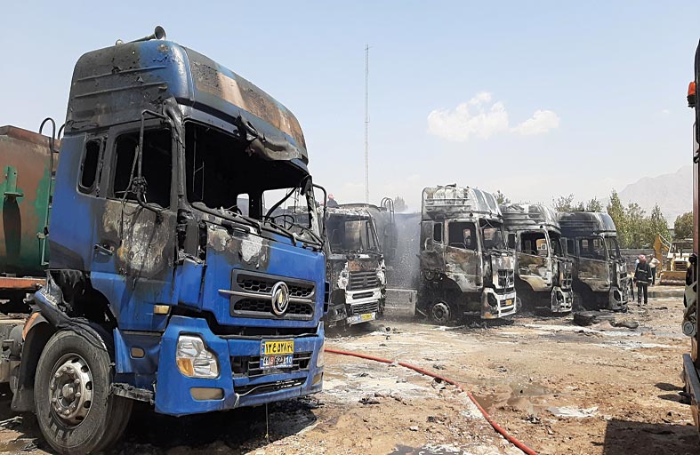 من جانبه، نشر موقع إيران إنترناشيونال مقطع فيديو متداول على مواقع التواصل الاجتماعي الإيرانية، يظهر حريقا هائلا في مخزن وقود بالمنطقة الصناعية في بلدة دولت آباد بمحافظة كرمانشاه، وتظهر ألسنة النيران مشتعلة والدخان الكثيف يتصاعد.