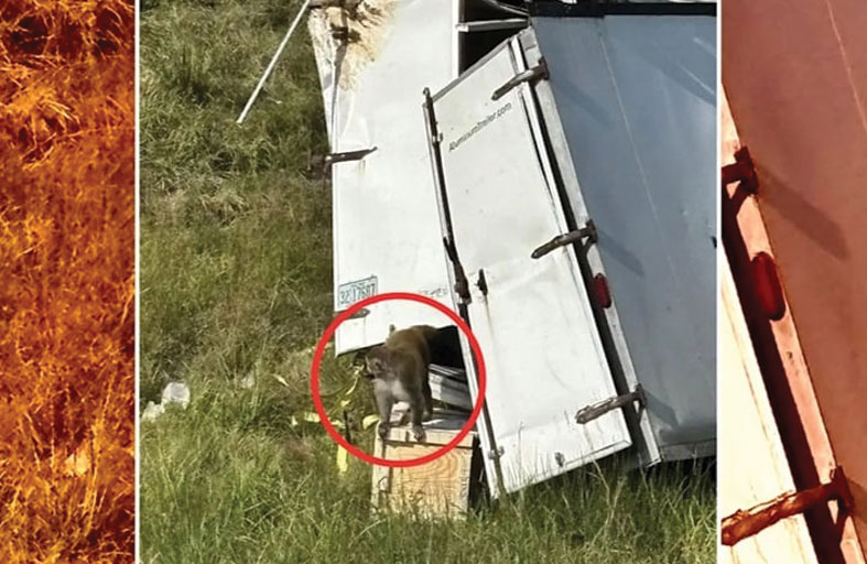 وأظهرت مقاطع فيديو قروداً تزحف بين الأعشاب الطويلة على جانب الطريق السريع رقم 59 شمال مدينة هايدلبرغ بولاية مسيسيبي، بينما ظهرت صناديق خشبية تحمل عبارة "حيوانات حية" وقد تحطمت وتناثرت في المكان.