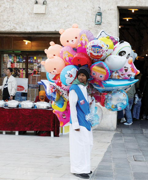 بائع بالونات يتجول في سوق في أول أيام شهر رمضان المبارك في الدوحة. (رويترز)