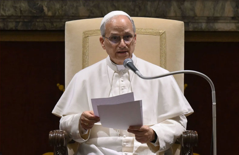 واستغل البابا ليو كلمته للتأكيد مجددا على تعاليم الكنيسة التقليدية بشأن الزواج، مشيرا إلى أنه «اتحاد ثابت بين رجل وامرأة»، ومشددا على أهمية الأسرة كأساس للتناغم المجتمعي.