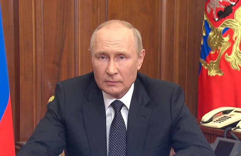 في رأي بوتين، تُمثِّل حربه “تمجيداً” للتاريخ الروسي بدايةً من “الحرب الوطنية العظمى” والجنرال ألكسندر سوفوروف الذي عاش في القرن الثامن عشر وصولاً إلى كاترين الثانية. إنها حرب في رأيه من أجل الحق في النطق باللغة الروسية والدفاع عن ثقافة روسيا ومعتقداتها، وحماية إرث أجيال من الأجداد الروس. ومن حيث التفاخر والتباهي، تجاوزت كلمته بكثير لغة الحوار للنقاش الإستراتيجي الأوروبي بعد الحرب العالمية الثانية، وكانت حادّة ووجودية الطابع، وأثبتت بما لا يدع مجالاً للشك أن بوتين لن يتراجع ويحفظ ماء وجهه. خلاصة القول، كانت كلمته إعلاناً صريحاً للحرب ضد أوكرانيا وخصومها الآخرين الذين لم يشاركوا بعد في ساحة المعركة. واستدعت الكلمة أيضاً حنين بوتين للاتحاد السوفيتي، إذ كانت حافلة بإشارات إلى “اضمحلال الدولة العظيمة”. ومرةً أخرى أكَّدَ بوتين على أن الغرب هو المُستعمر لأوكرانيا، وأنه يستحيل أن تكون هناك أي مفاوضات بشأن وضع المناطق الأربع التي ضمَّها حديثاً. وفي رأي بوتين، حاول الغرب أن يفرض أوامره على روسيا، ولا يستطيع أن “يهضم” فكرة وجود “دولة عظيمة وثرية كروسيا”. ولذلك فهو يحاول أن يُخضعها لإرادته ويحتلها.