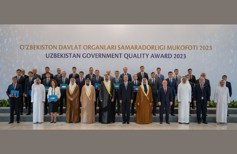 وكرم رئيس وزراء أوزبكستان الفائزين بجائزة أوزبكستان للجودة الحكومية في فئاتها المؤسسية والفردية، الذين تم اختيارهم بعد عملية تقييم شاملة لأكثر من 200 ترشيح من 17 جهة حكومية تقدمت للجائزة في دورتها الأولى، وشارك فيها 43 خبيرا ومقيما ولجنة تحكيم من دولة الإمارات.