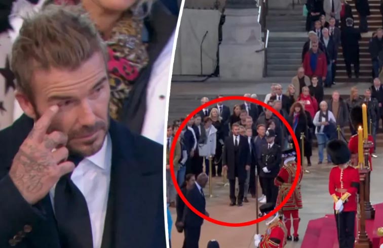غالبت الدموع وبدت علامات الحزن واضحة على نجم كرة القدم السابق، ديفيد بيكهام، عندما حظي بفرصة لوداع الملكة إليزابيث الثانية، بإلقاء نظرة على نعشها، بعد أن وقف في طابور لمدة 13 ساعة.