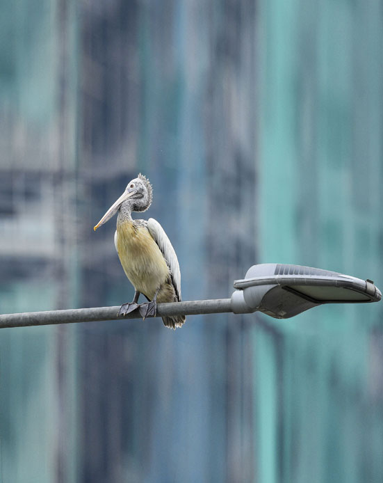 بجعة تقف على كشاف ضوء الشارع في كولومبو، سريلانكا.  ا ف ب