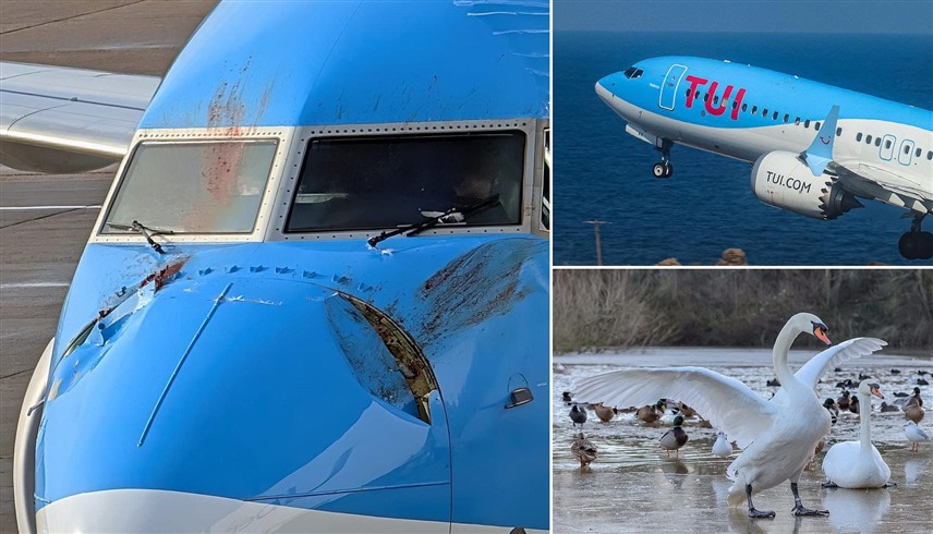 هبطت طائرة مكتظة بالركاب اضطرارياً بعد اصطدامها ببجعتين، وثقب جسم الطائرة. وقالت صحيفة "ذا صن" إن الطائرة بوينغ 737 ماكس، لشركة TUI، كانت في طريقها من لندن إلى أفريقيا عندما اصطدمت بها الطيور بعد لحظات فقط من إقلاعها. وتسبب الاصطدام في أضرار جسيمة لمقدمة الطائرة على ارتفاع حوالي 300 متر. وأصدر الطياران نداء استغاثة وأكملا الهبوط الاضطراري في مطار هيثرو بلندن وعلى متنهما جميع الركاب الـ 192. وأظهرت صور الزجاج الأمامي ملطخاً بالدم، و"يُعتقد أن بجعتين عملاقتين على الأقل دخلتا الطائرة عندما وصلت إلى سرعة عالية.