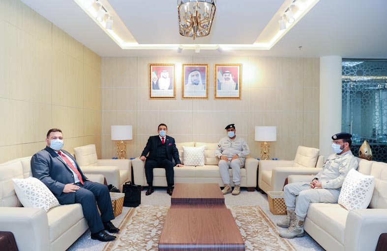 بحث العميد ثاني بطي الشامسي مدير أكاديمية سيف بن زايد للعلوم الشرطية والأمنية والدكتور مثنى غني عبد الرزاق رئيس الجامعة الأمريكية في الإمارات يرافقه الدكتور ماريوس باناجيوتيس افثيميوبولوس عميد كلية الأمن والدراسات الدولية بالجامعة التنسيق والتعاون والشراكة بين الأكاديمية والجامعة في المجالات التدريبية والتعليمية. واطلع الوفد من مدير أكاديمية سيف بن زايد للعلوم الشرطية والأمنية - خلال اللقاء الذي عقد في مبنى الأكاديمية - على جهودها في الارتقاء بالأداء الوظيفي لمنتسبي شرطة أبوظبي، عبر توفير التأهيل والتدريبيْن العام والتطبيقي، في مختلف مجالات الشرطة والأمن والعلوم المساعدة .. لافتاً إلى حرصها المستمر على تعزيز التعاون العلمي والتدريبي مع المؤسسات العلمية والشرطية. حضر اللقاء العميد الدكتور راشد محمد بورشيد نائب مدير أكاديمية سيف بن زايد للعلوم الشرطية والأمنية.